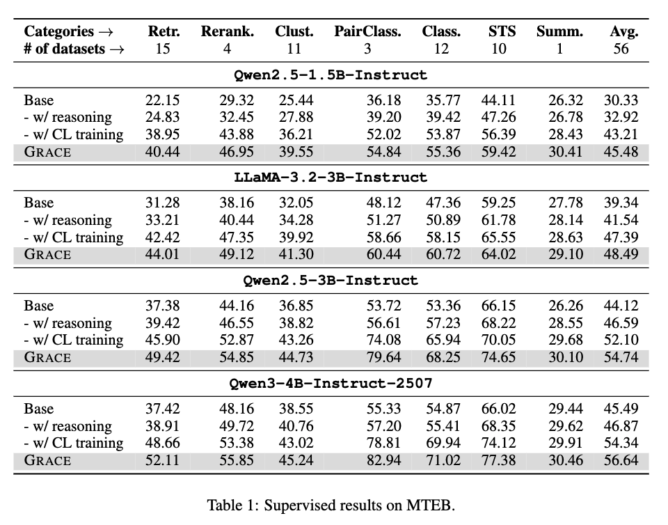 简单来说,GRACE不再是“把文本压成向量”,而是“让模型先解释,再学Embedding”——
