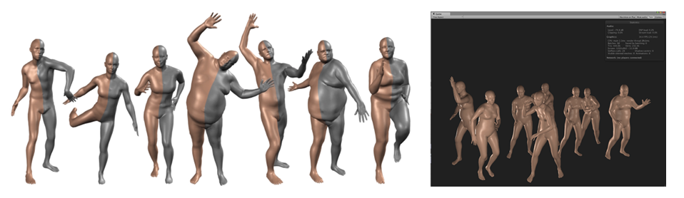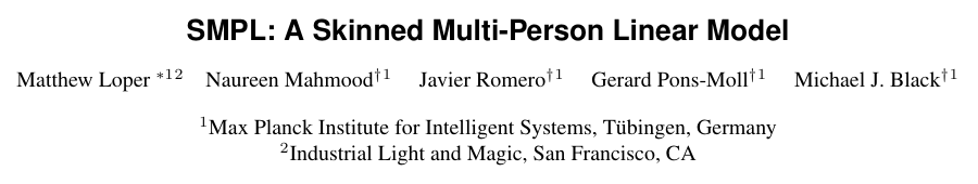 首先是The SMPL Body Model Team,SMPL是一种基于蒙皮和混合形状技术、从数千例3D人体扫描数据中学习得到的逼真人体三维模型。该模型在精度上超越现有模型,并与主流图形渲染管线完全兼容。