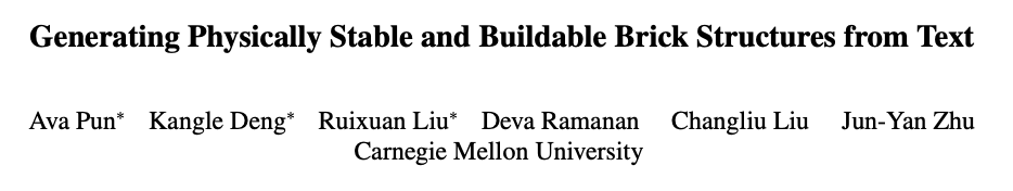 Generating Physically Stable and Buildable Brick Structures from Text(从文本生成物理稳定且可搭建的积木结构)。