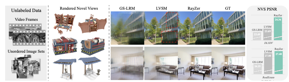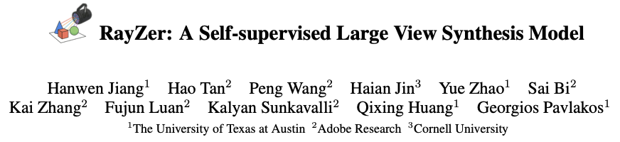 RayZer: A Self-supervised Large View Synthesis Model(基于自监督学习的大规模视图合成模型)。