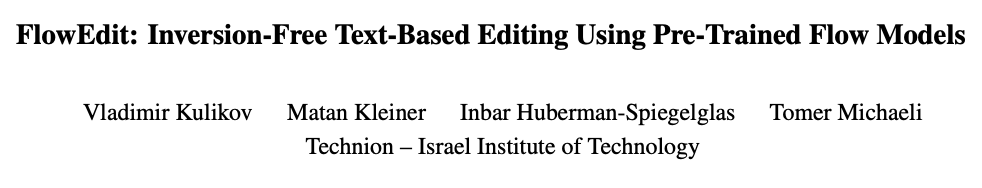 FlowEdit: Inversion-Free Text-Based Editing Using Pre-Trained Flow Models(基于预训练流模型的无反演文本编辑方法) 。