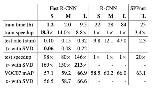 实验表明,在PASCAL VOC 2012数据集上,Fast R-CNN对VGG16网络的训练速度较R-CNN提升9倍,测试速度提升213倍,并获得了更高的mAP指标;相较于SPPnet,其VGG16训练速度加快3倍,测试速度提升10倍,且检测精度更优。