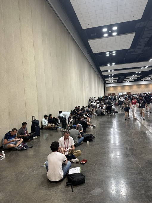 有意思的是,这么大的会议,竟然有许多人坐在地上吃午饭。