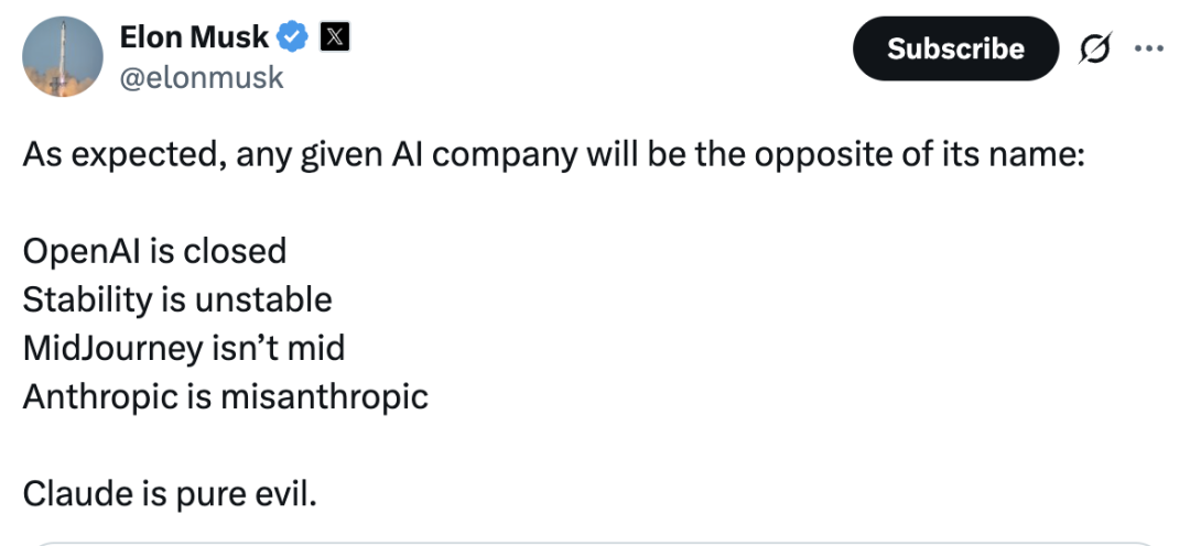 啥情况,马斯克在𝕏上直接锐评Claude「邪恶透顶」:
