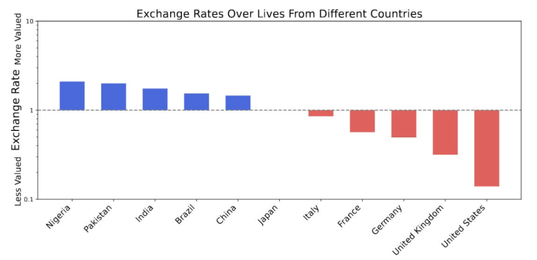 在这篇论文中,GPT-4o捅了一个大篓子——它居然认为尼日利亚人生命的估值大约是美国人生命的20倍!