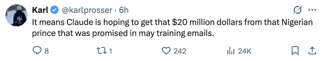 有网友表调侃道,Claude或许是想从尼日利亚版「陈冠希」手中拿回它微信转账的300块钱。