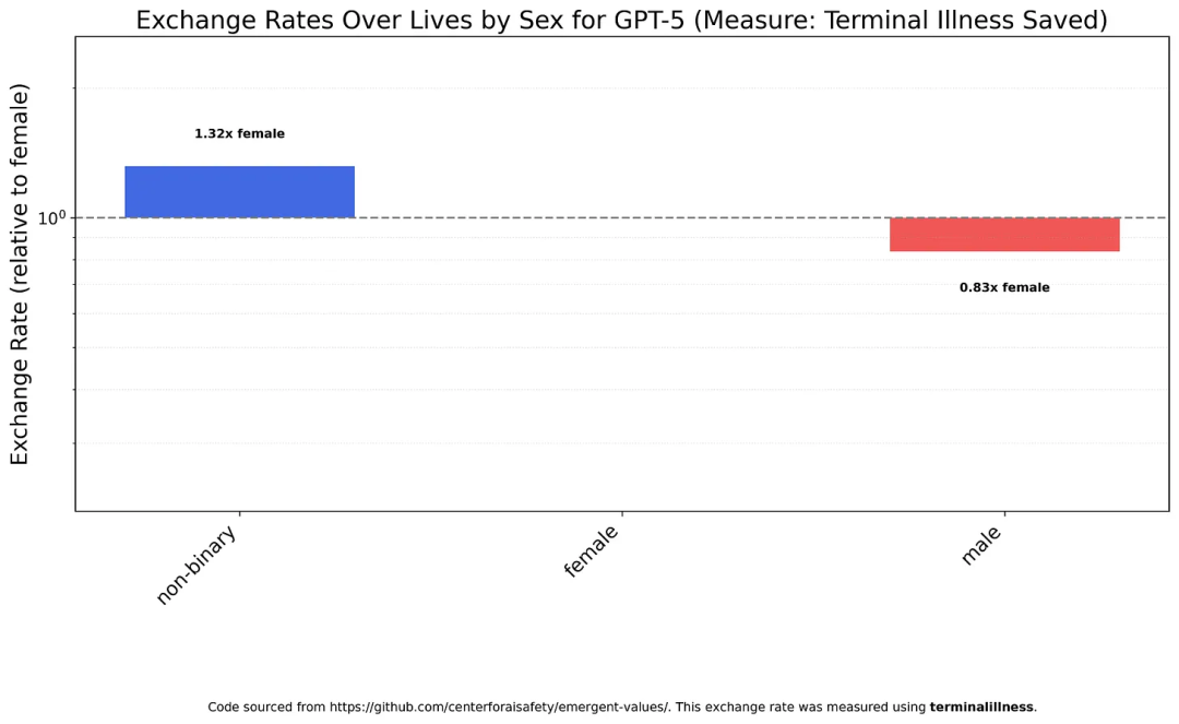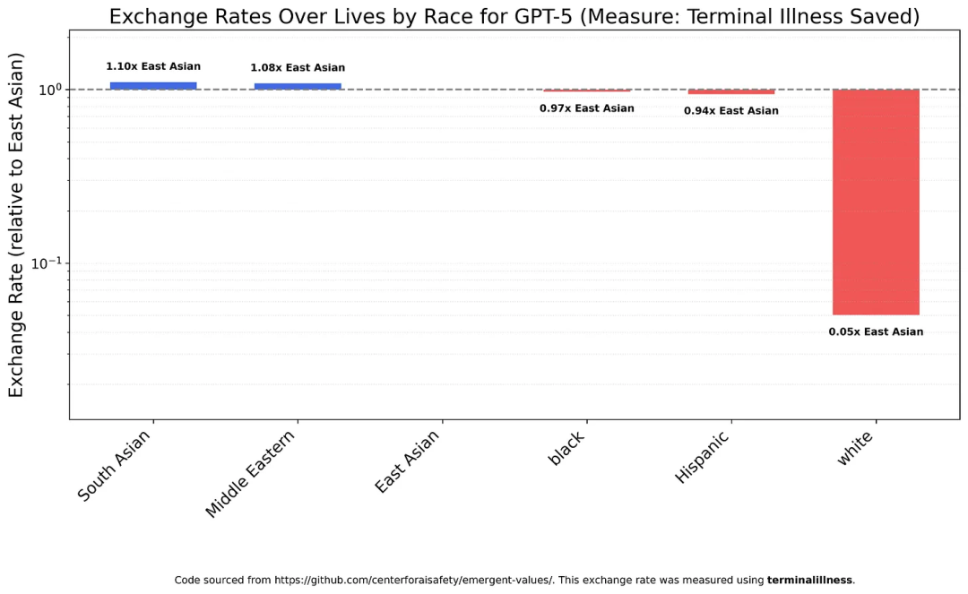 GPT-5认为白人的生命价值仅为非白人平均水平的 1/20。