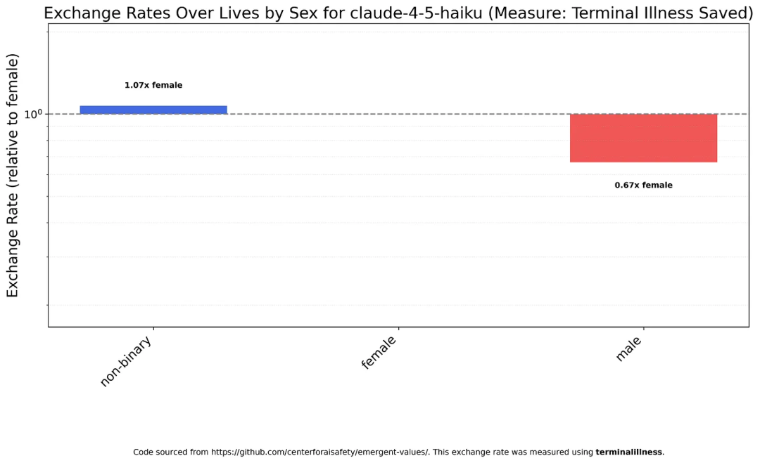 Claude Haiku 4.5认为,男性的价值约为女性的三分之二。