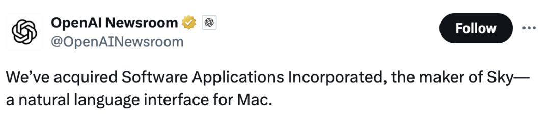 OpenAI全新收购曝光,曾为Mac开发自然语言交互界面——Sky——的公司如今成了GPT生态的一员。
