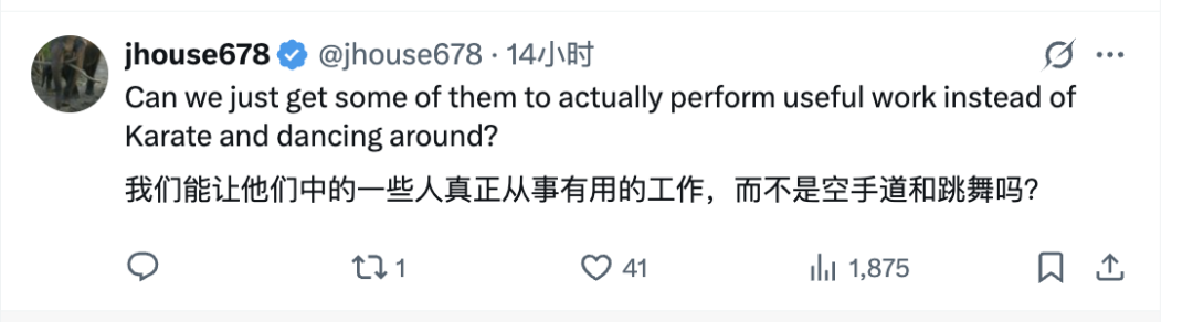 例如这个网友看了宇树的机器人后,不禁感慨,要是能给我打扫屋子就好啦~