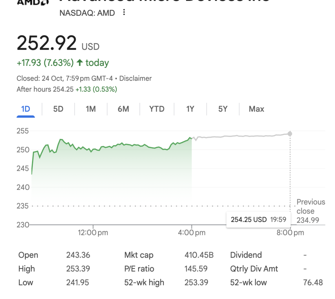 AMD股价应声上涨7.63%,市值上涨290亿美元来到4100亿美元,相当于英伟达的1/11了。