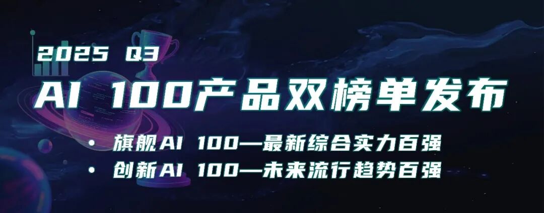 「AI 100」是量子位智库推出的AI产品风向标系列内容,致力于挖掘推广国内的高潜力AI产品,包含「旗舰100」和「创新100」季度双榜单,及1v1访谈栏目。