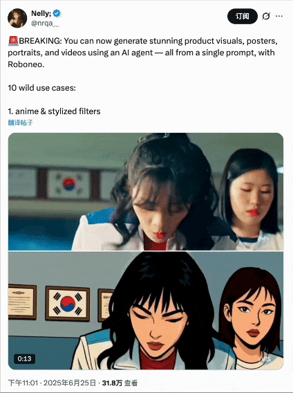 本来以为是NanoBanana整的新玩法,结果点开评论区一看:嗐,原来是美图自家的AI Agent——叫RoboNeo~