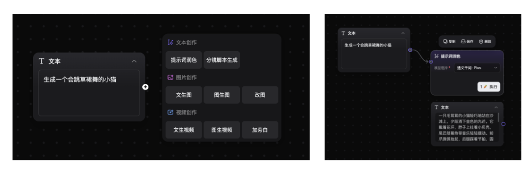 除了基础生图功能外,RoboNeo的工作流功能也值得一提,它能帮忙润色提示词、生成脚本,也能直接进行内容创作。