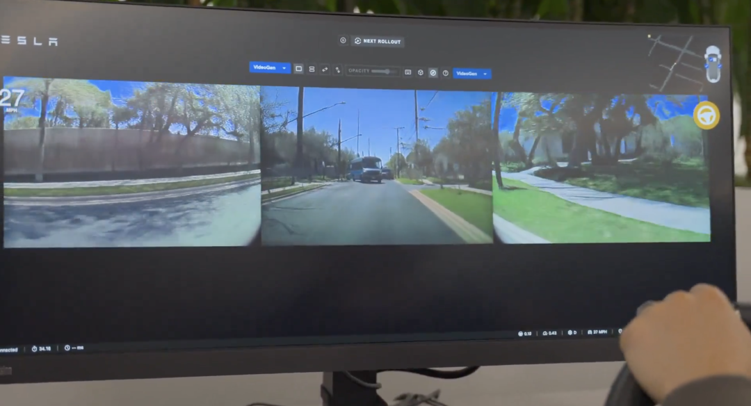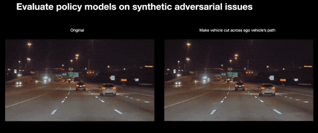 该模拟器使用特斯拉筛选出的同样的海量数据集进行训练,其功能并非预测给定状态下的行动,而是根据当前状态和下一步行动来合成未来状态。