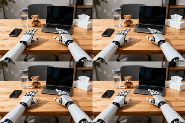 一会儿拿桌上的小熊、一会儿拿水杯、甚至下班关电脑……不同动作下,桌面及周围的环境均未发生“异变”,扛住了一致性挑战。
