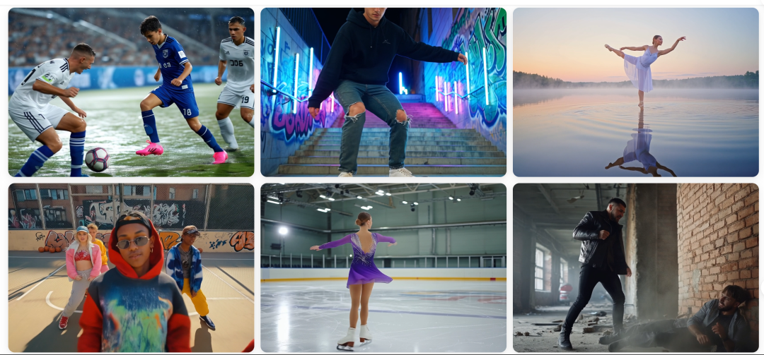 仅以其中的“水上芭蕾”来看,模型面临的挑战不可谓不艰难——既需要具备高度的细节捕捉能力,还需要能够处理复杂的光影效果、环境模拟和动态场景。