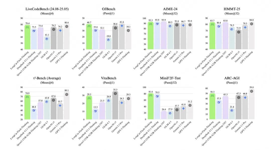 一个月不到,又上新了LongCat-Flash-Thinking,在逻辑、数学、编码、Agent多任务中均达成SOTA水平,是国内首个同时具备“深度思考+工具调用”和“非形式化+形式化”推理能力的LLM,可以实现更低成本、更优性能。