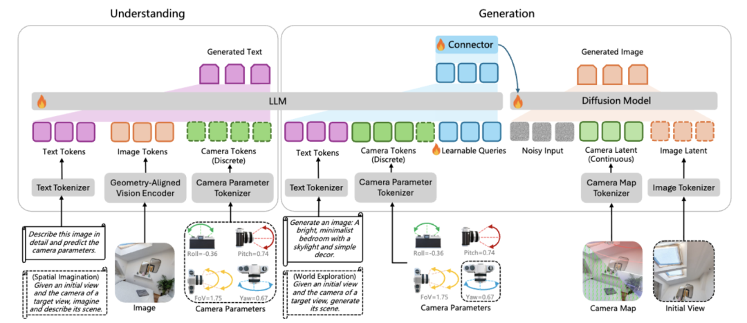 通过用相机思考(将参数转摄影术语、分析空间线索)和400万组数据训练,解决了此前模型两者分离的问题,统一了以相机为中心的多模态理解与生成,支持空间想象,并实现灵活的跨视角应用如世界探索等