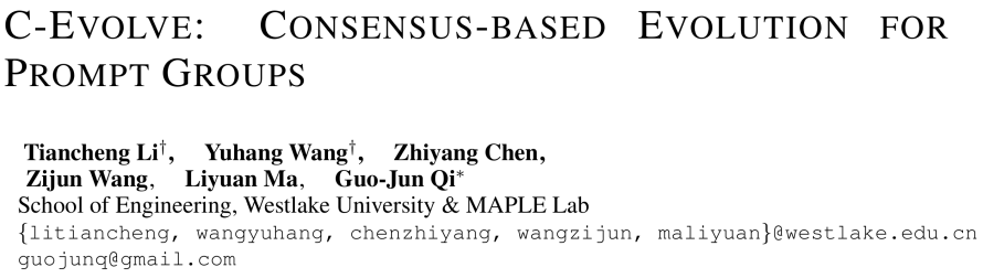 基于这一思想,西湖大学MAPLE实验室齐国君教授团队提出了基于「共识机制」的提示词组进化算法C-Evolve。