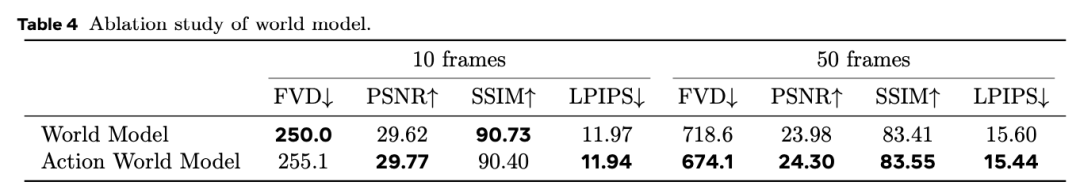 此外,研究还表明引入世界模型能够显著提升动作模型的性能。