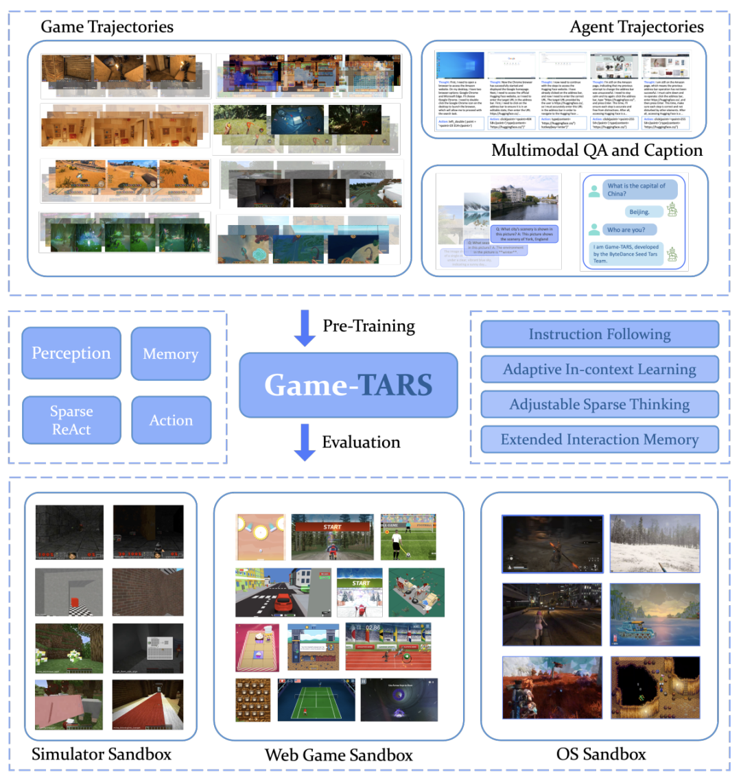 Game-TARS基于统一、可扩展的键盘—鼠标动作空间训练,可在操作系统、网页与模拟环境中进行大规模预训练。