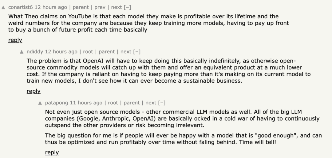 研发投入确实像个无底洞,但从经济学角度看,如果收入能覆盖「其正在研发的模型摊销后的研发支出+日常运营成本」,那OpenAI就不算在亏。