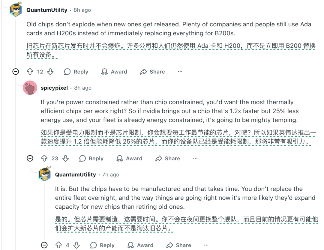 一台昂贵的英伟达芯片,如果暂时插不上电,两、三年后又被新架构取代,那等于在折旧周期内就提前贬值。