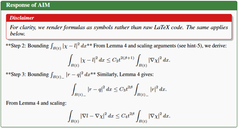 例如,在“Cell Problem”的分析中,人类专家向AIM提供了相关理论方法的辅助引理,使其推理锚定在严谨的数学基础上,避免逻辑偏离。