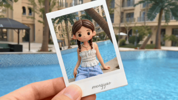 于是乎,一张手举自拍杆的超Q黏土风拍立得照片,咔嚓一下就“活”起来了: