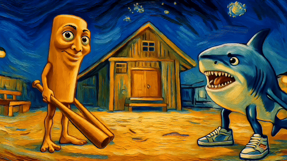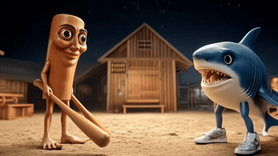 还记得这个超抽象的国外山海经吗,就是这个小木棍和耐克鲨鱼,我们把这个原视频喂给AI: