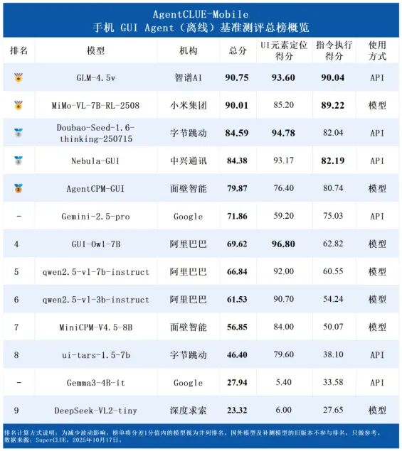 △图源:AgentCLUE-Mobile手机GUI Agent(离线)测评基准