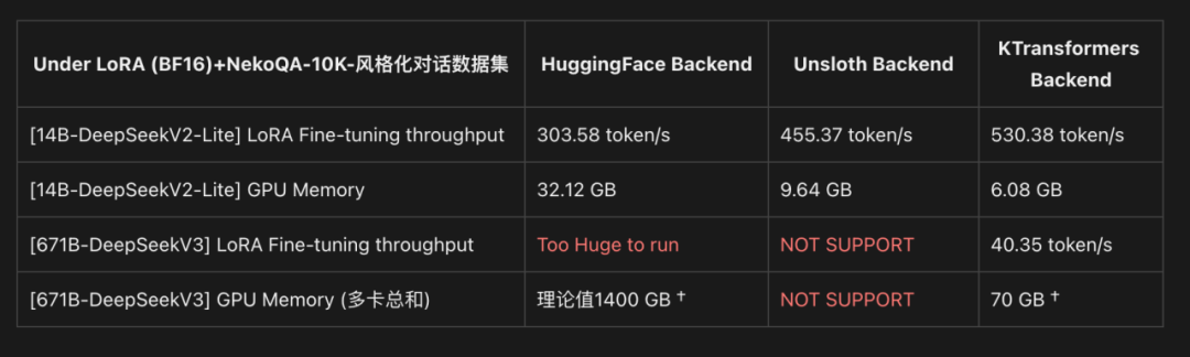 嗯,KTransformers可以说是硬生生把微调超大模型的门槛,从数据中心级拉到了个人工作站级了,而且速度极快。