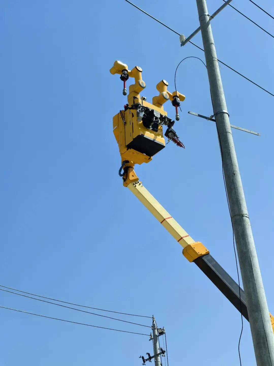 1万伏的高压配网线路上,一台亮黄色的具身智能机器人正在替人类干活。