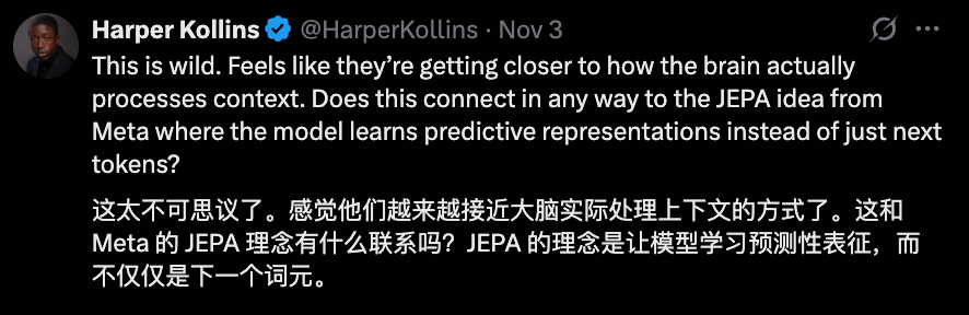 有网友认为,这种方法看上去越来越接近大脑实际处理上下文的方式。