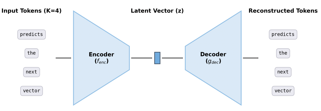 他们设计了一个高保真自编码器,能将K个token压缩成一个连续向量,并能以超过99.9%的准确率从中重构原始token。