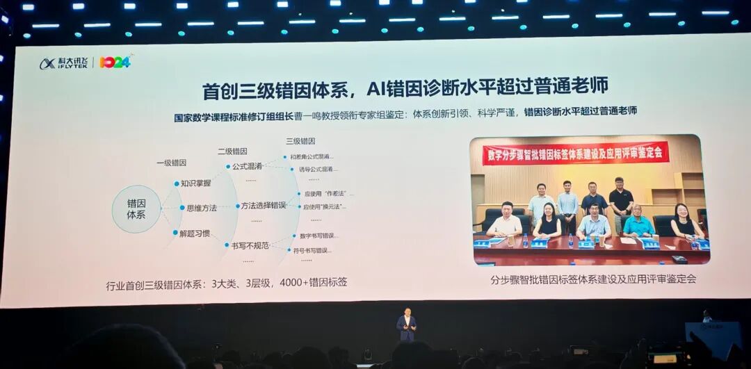 据介绍,由讯飞首创的错因标签体系,在智能批改过程中可完成3大类、3层级、4000+错因溯源。其解答题分步骤批改及错因诊断水平已超普通老师,首次迈过产品实用门槛。