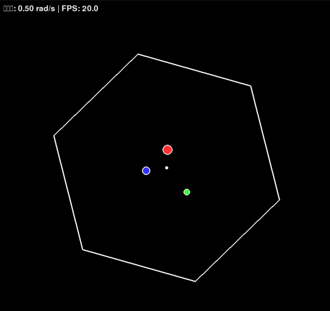 编写一个Python程序,让一个小球在旋转的六边形内弹跳,小球运动遵循物理规律
