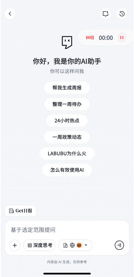 你会发现,当数据源足够精准,AI的输出质量就会很高,它不是网上抓取的垃圾新闻。这两个功能对我个人帮助很大,而且Get笔记里所有功能,其实都是基于我们自己的需求产生的。