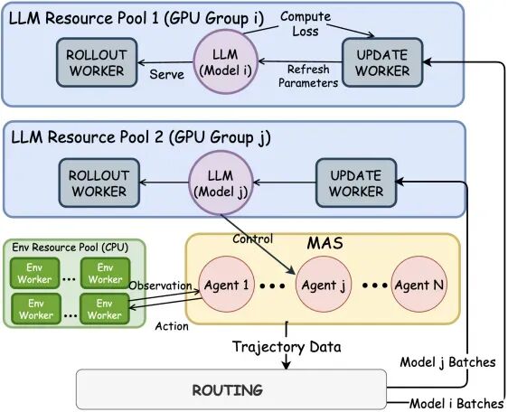 大语言模型智能体的强化学习框架, 首次实现了通用的多智能体的“群体强化”。