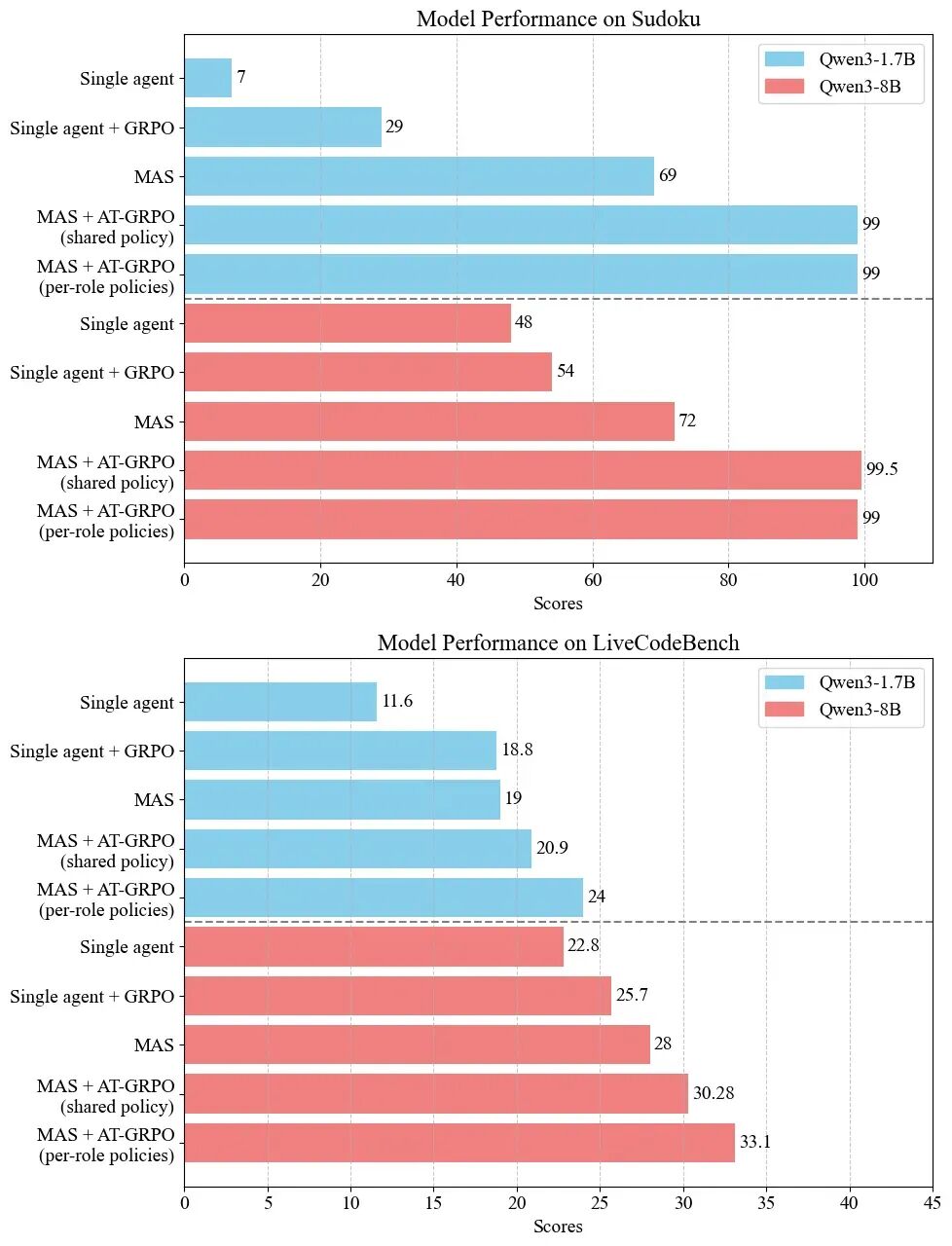 为训练大模型智能体,Group Relative Policy Optimization (GRPO) 已被验证为通用的有效强化学习算法。然而,当前所有针对LLM的强化学习训练框架,包括GRPO算法本身,都局限于单智能体训练的范畴。多智能体间的协作优化,即“群体强化”的学习机制,仍然是一个亟待填补的空白。
