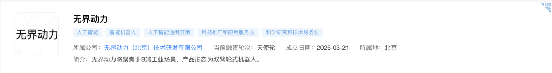 根据官方介绍,无界动力2025年3月创立于北京,聚焦于构建机器人“通用大脑”与“操作智能”。