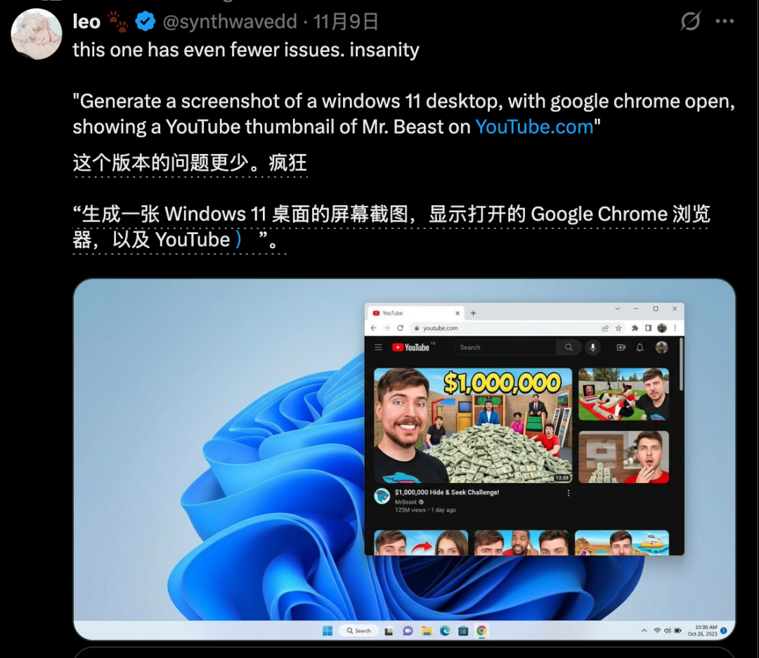 下面这张图完全是AI生成,不仅包括网页中的内容,甚至整个浏览器界面和桌面都是生成的,而且没有参考图像。
