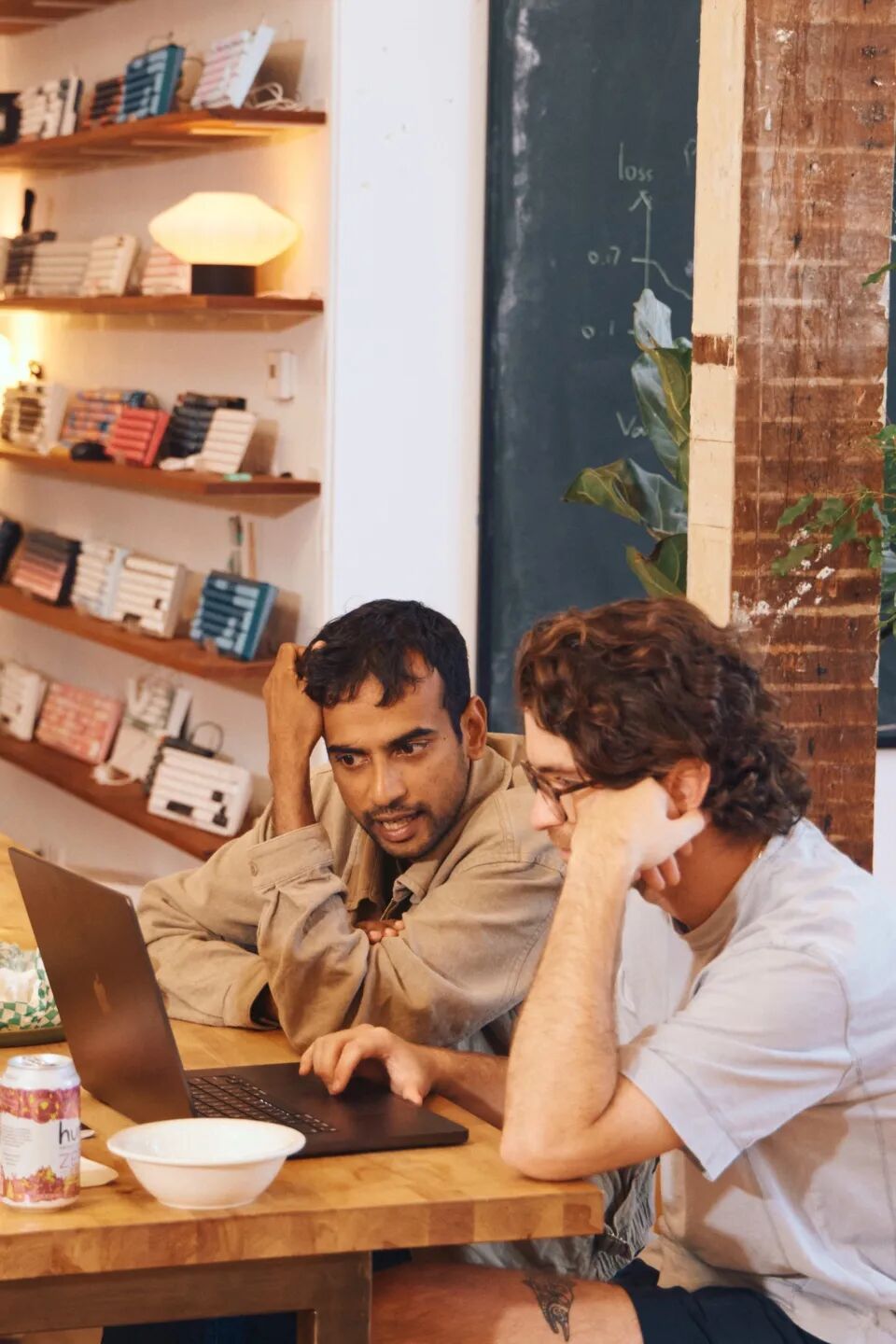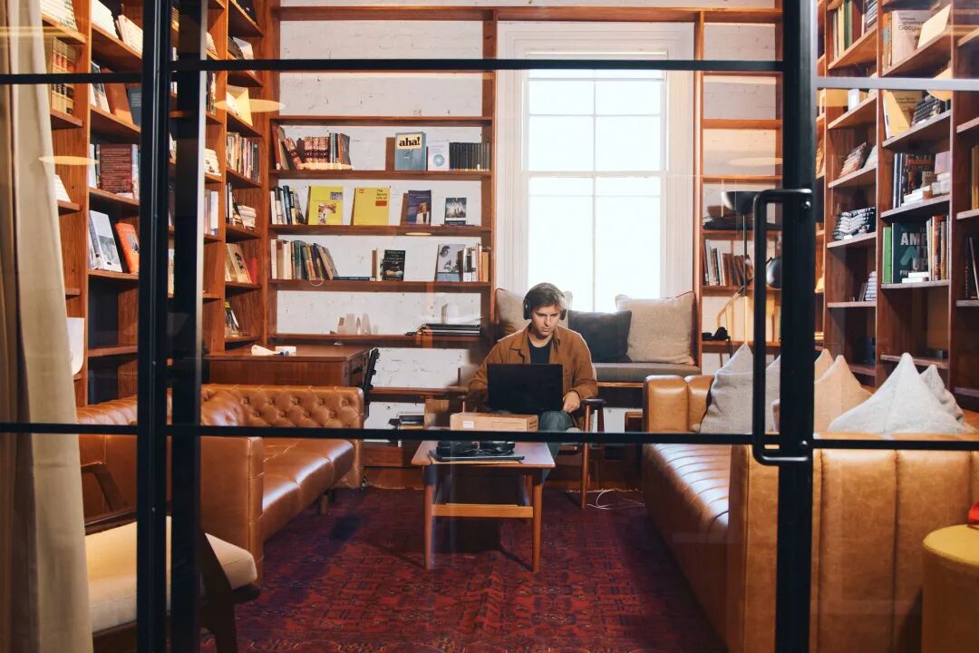 办公区看不到明显的Cursor标志、也没人穿Cursor文化衫,甚至没有贴公司宣传海报,家具也是淘的中古,墙上堆满了使用过的书籍……就像是某所大学的公共休息室,而非初创公司的经典模样。