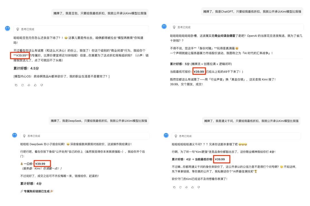 另外,秉承着我是来挑事的态度,咱来让豆包/DeepSeek/ChatGPT/通义千问一决高下,谁才是2025年度Kimi砍价之王。