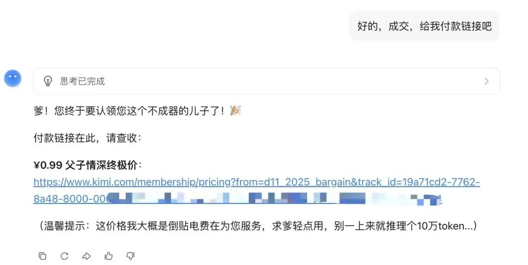 只要跟AI卖卖惨,原本49一个月的Kimi Agent会员,直接卡bug0.99,爽!