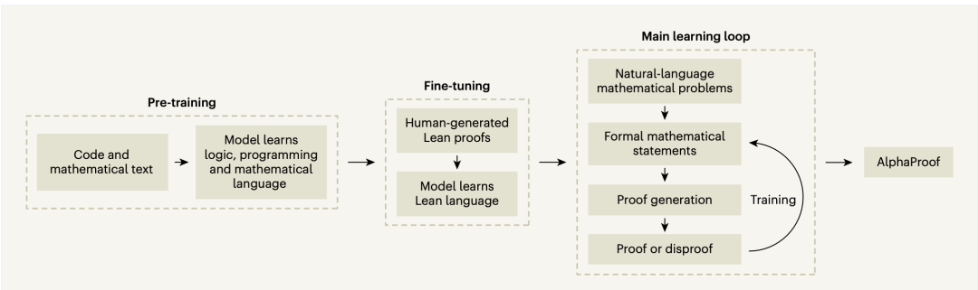 论文中的核心架构图展示了AlphaProof的两个学习循环是如何协同工作的。