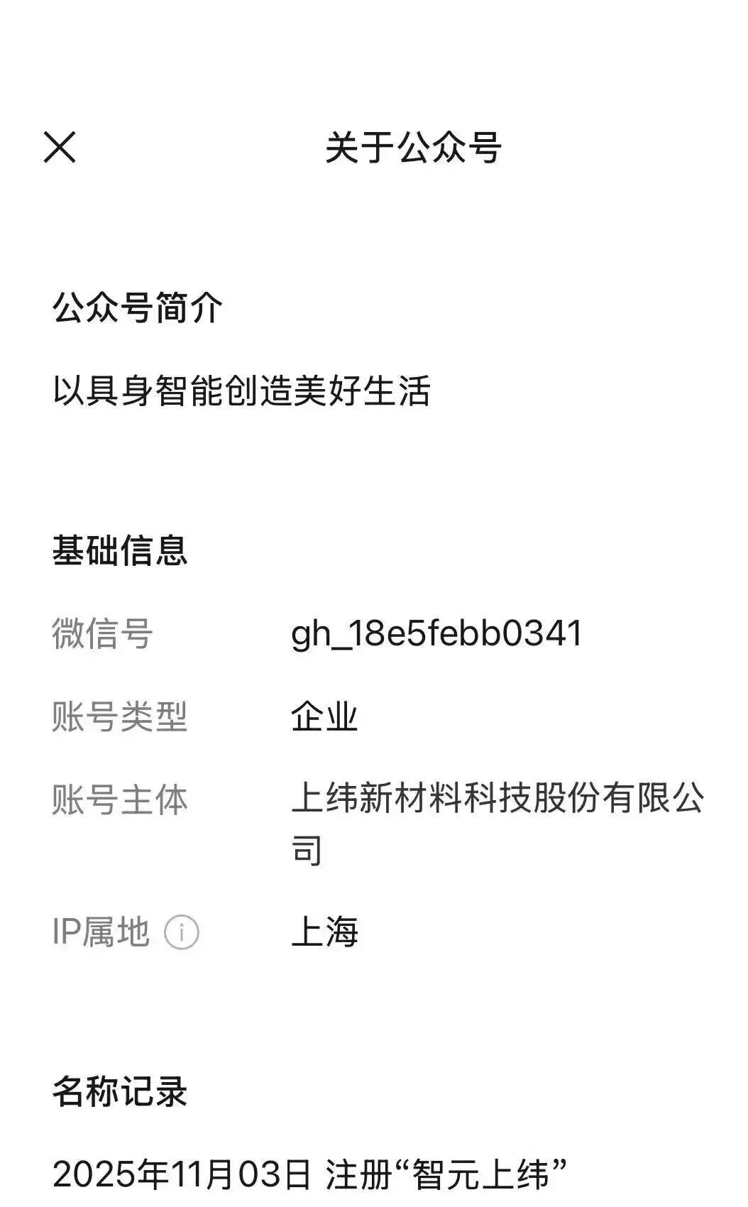 目前,《智元上纬》公众号上的文章已被删除,主页上只剩下“账号主体:上纬新材科技股份有限公司”的简介。