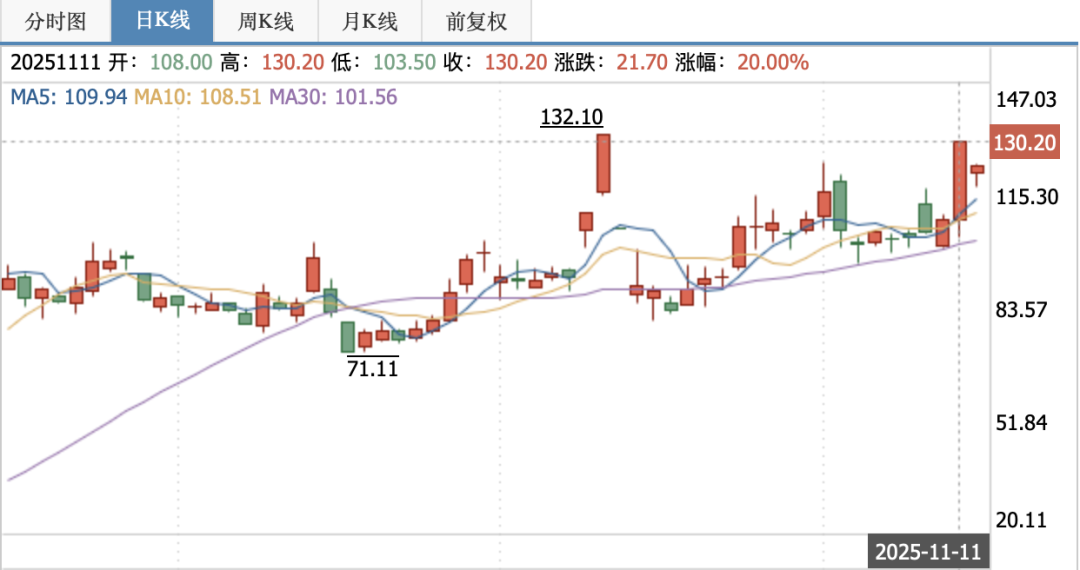 然而即便如此,上纬新材还是在今年7月从7块钱,涨到11月11号的130……