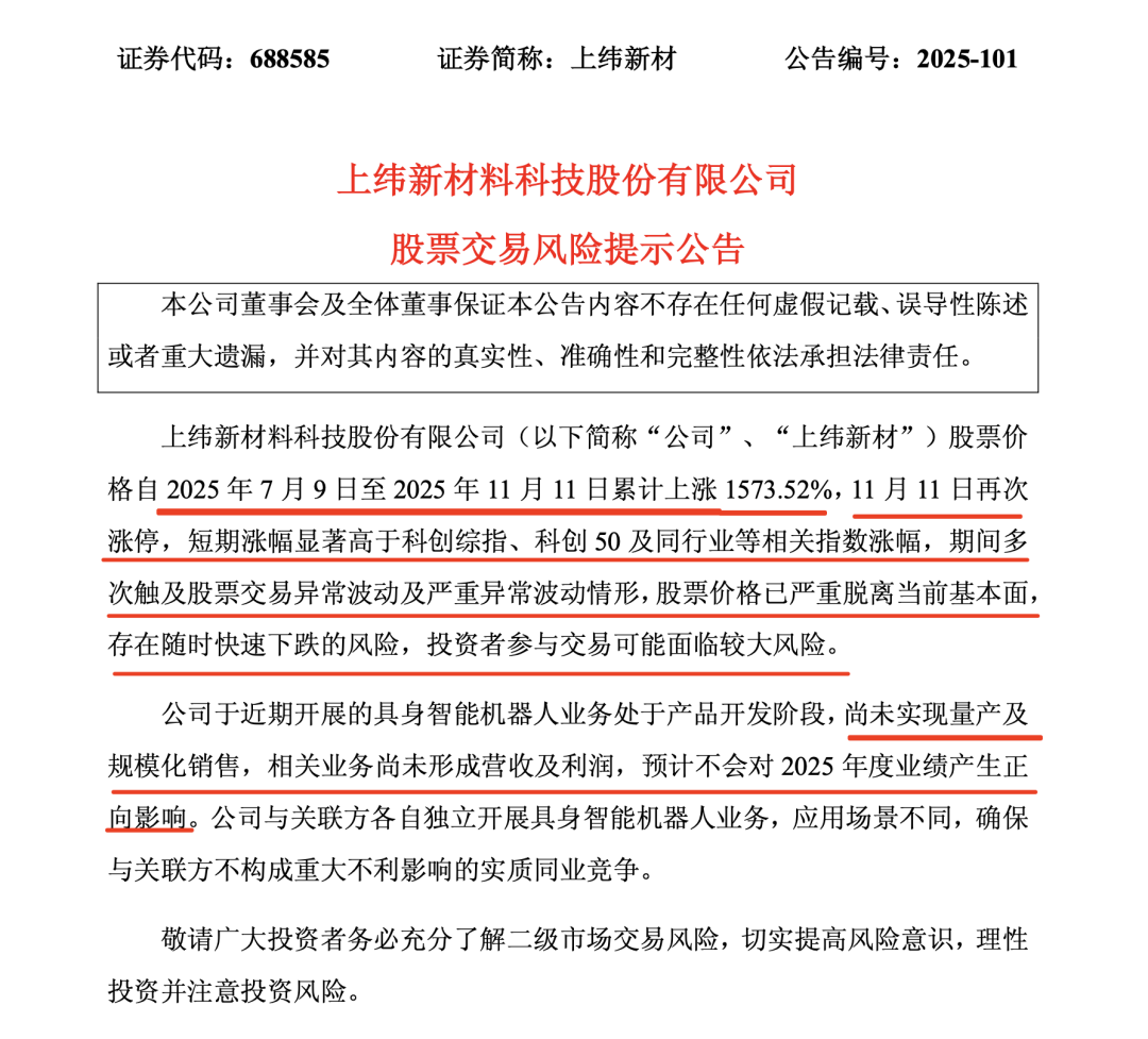 翻译一下就是:还没赚到钱、也没造出来、跟智元是独立开展的,但股价先涨了,有风险,需谨慎。